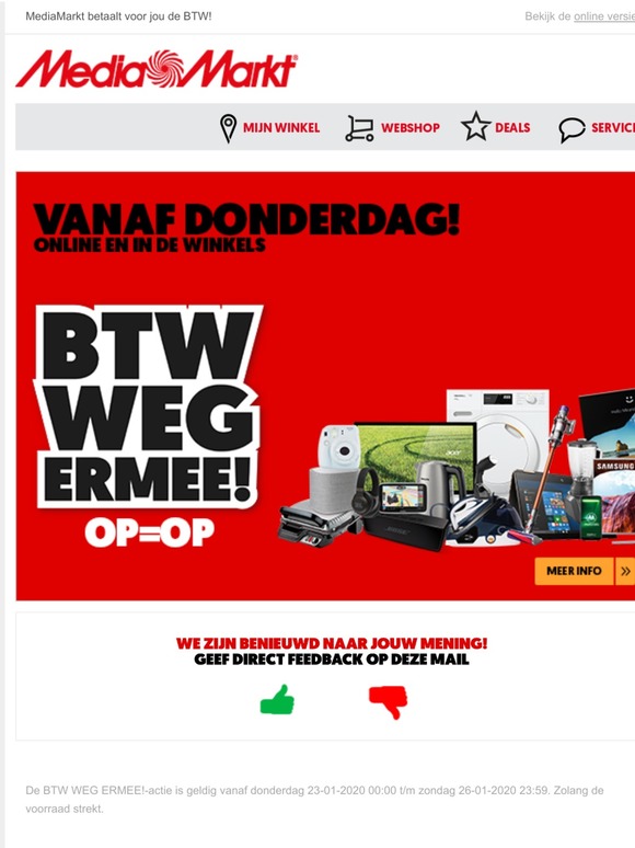 Media Markt: Vanaf donderdag: BTW WEG ERMEE! | Milled