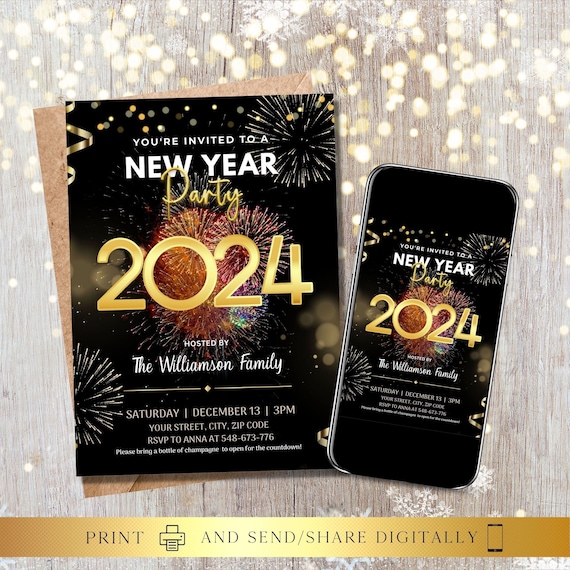 ANY TEXT 2024 New Year Party Invitation Digital and Printable Etsy
