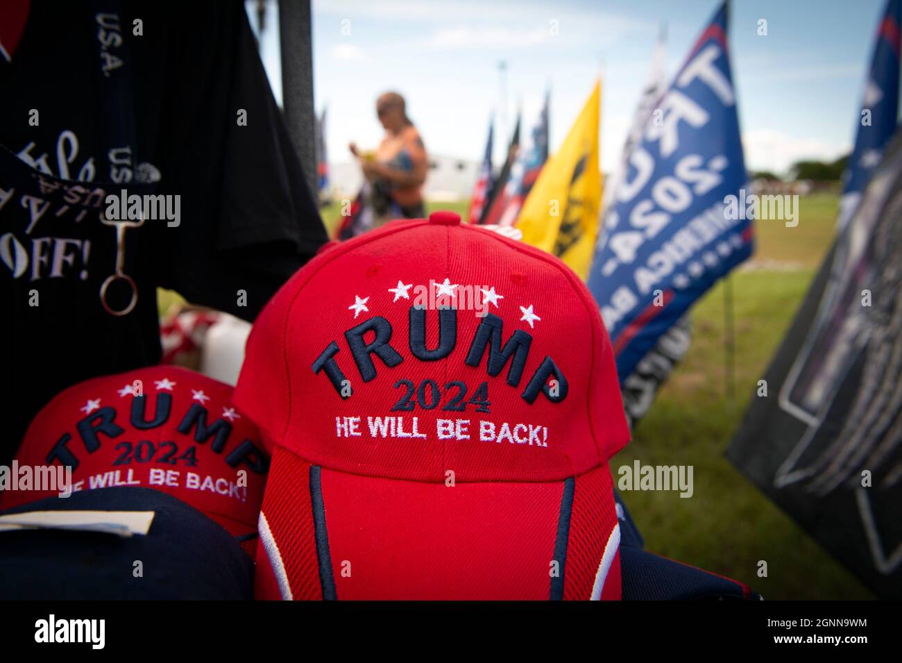 Perry, Georgia, USA. 26th Sep, 2021. Trump 2024 hats for sale at a